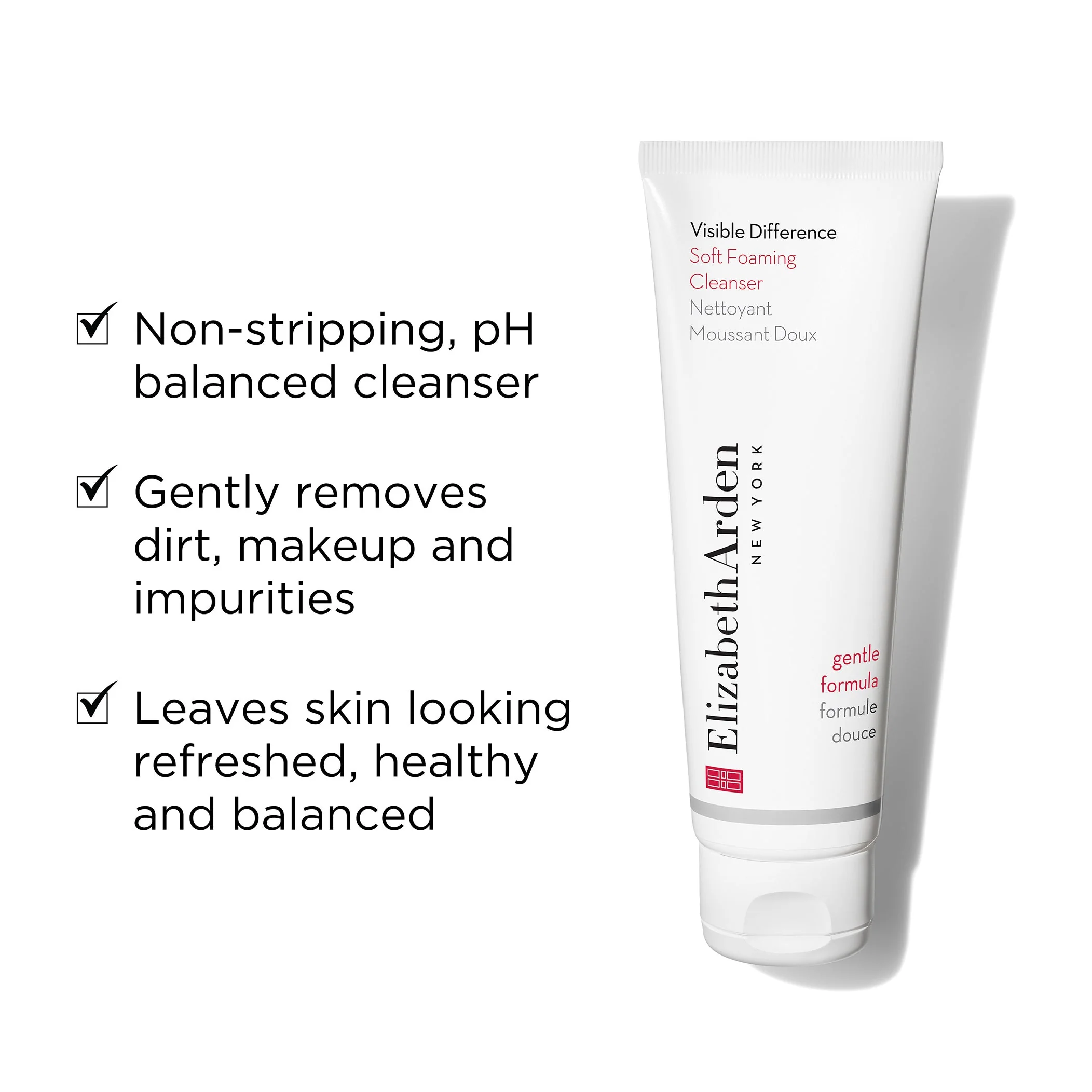 - Non-stripping, non-drying pH balanced foaming cleanser gently removes makeup, dirt and impurities.